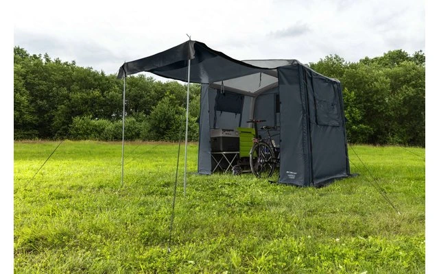 Tenda universale premium multifunzionale con tecnologia ad aria e comoda altezza da terra. Il Positano-L 4 Season offre molto spazio per riporre biciclette, utensili da campeggio, giocattoli, attrezzi da giardino e molto altro. Grazie ai pali dell’aria, può essere montato rapidamente e facilmente. Il materiale in PVC resistente alle intemperie, incluso il rivestimento di protezione UV, permette di usarlo tutto l’anno. Tre finestre (possono essere arrotolate a metà o completamente) con zanzariera inclusa forniscono una ventilazione ottimale. Due entrate (avvolgibili) permettono un facile accesso. Per una protezione ottimale, la tenda universale può essere chiusa completamente opaca.