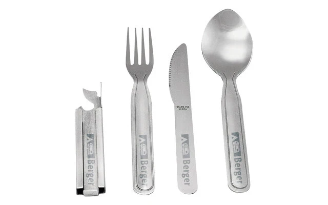 Composto da coltello, forchetta, cucchiaio, incastro, in caso