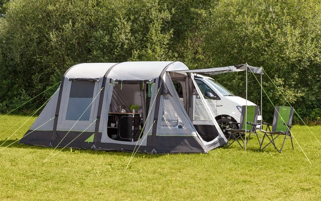 Tenda da sole per furgone, gonfiabile e indipendente, per veicoli con altezza della grondaia di 180 – 220 cm. L’altezza totale è di 240 cm.